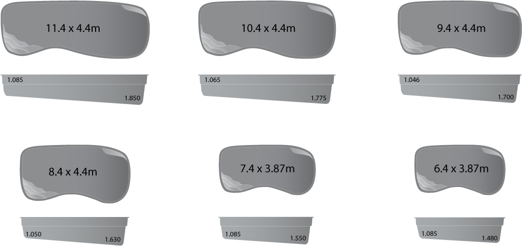 The Harvest swimming pool is a ‘right side’ design with entry steps on the right side at the shallow end. The left side of the pool is complimented with a seating area at the deep and shallow end. Available in 6 lengths, all sizes feature a safety grip rail and foot ledge.